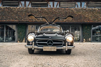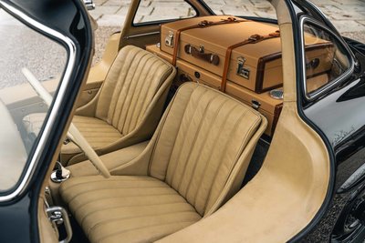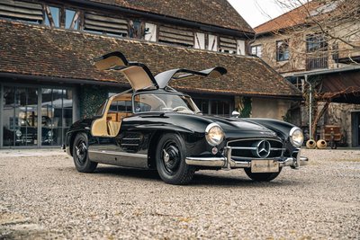 NEU eingetroffen Highlights: • 1956 Mercedes-Benz 300 SL Coupé in Auslieferungsfarbe schwarz, kombiniert mit Lederausstattung creme und seltenen Rudge Zentralverschlussfelgen • Erstauslieferung am 3. Juli 1956 über Mercedes-Benz Distribution New York, USA • Sonderausstattung ab Werk: eine Scheibenwaschanlage, Sonderpolsterung, Instrumente mit englischer Beschriftung, Sealed-beam Scheinwerfer mit getrenntem Standlicht, Stoßstangen Hörner, Scheibenräder mit verchromter Schüssel und hochglanzpolierter Felge sowie Winkelmesser & Auswuchtgewichte lose mitgeliefert - alles verpackt in einer leichten Seekiste • aus dem früheren Vorbesitz von coupé Group Member Marty Wiener, USA und des bekannten Rosso Bianco Museums, Aschaffenburg • dokumentierte Motorüberholung im Jahr 2007 und vor nur 6.000 Meilen • inklusive passendem zweiteiligen Kofferset sowie umfangreichen HK-ENGINEERING Auslieferungsservice vor Übergabe • matching numbers Zwischenverkauf und Irrtümer für dieses Angebot sind ausdrücklich vorbehalten. Ausschlaggebend sind einzig und allein die Vereinbarungen im Kaufvertrag.