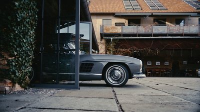 HK-ENGINEERING in Polling – a global leader in the restoration and sale of exclusive Mercedes-Benz 300 SL models since 1984, as well as your reliable partner in the classic car trade. With passion and the highest quality standards, we dedicate ourselves to unique vehicles that retain their value and stir emotions. In addition to the vehicle offered here, we always have an exquisite selection of 300 SLs and other classics available for you. Please feel free to contact us. HIGHLIGHTS: • Beautiful, perfectly restored 1956 Mercedes-Benz 300 SL Coupé in anthracite gray with elegant cognac leather interior • Completely restored by HK-ENGINEERING between 2021 and 2023, with only 1,700 kilometers driven since then • Restoration work costing over €580,000, including repainting on bare metal in anthracite gray, new cognac leather interior, and a complete technical overhaul • Part of the renowned James Leak Collection (USA), only six documented previous owners in total • First delivered on September 5, 1956, via Mercedes-Benz New York in fire engine red (DB 534) with black leather interior (953) • According to data card, with extensive special equipment, including: special upholstery, instruments with English lettering, sealed beam headlights with separate parking lights, bumper horns, protractor and loose balancing weights supplied, disc wheels with chrome-plated bowl and highly polished rim, windshield washer system, and 1 kg paint reserve • According to Mercedes-Benz data card with coveted "matching numbers"