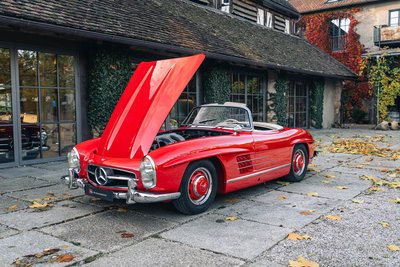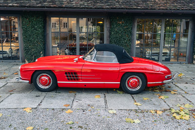 HK-ENGINEERING in Polling – since 1984 a world-leading specialist in the restoration and trading of exclusive Mercedes-Benz 300 SL models, as well as your reliable partner for classic automobiles. With passion and the highest standards of quality, we dedicate ourselves to unique vehicles that preserve values and evoke emotions. In addition to the vehicle offered here, we always have an exquisite selection of 300 SL models and other classics available – please feel free to contact us. Highlights: • 1958 Mercedes-Benz 300 SL Roadster with matching numbers, in family ownership for 12 years – a very interesting project with potential for further work according to individual preferences • According to the available Mercedes-Benz data card and delivery note, the vehicle was first delivered on May 4, 1959 via Mercedes-Benz Sales Inc., South Bend (USA). The optional equipment selected at the time of order included, in addition to the US specification, a Becker Mexico radio and the note “250 miles run-in,” including the first customer service to be carried out thereafter • Delivered from the factory in a special color combination: ivory paintwork (DB 608) combined with light grey leather interior (code 955) and a black soft top • According to the 300 SL Roadster Register, two known previous owners in the USA and one owner in Belgium (2009–2013) • Including an existing Klaus Kukuk expert report with forensic examination of the frame and verification of the relevant numbers • matching numbers of chassis, engine, body, as well as front and rear axles Errors and omissions for this offer are expressly reserved. The sole decisive factor is the agreement set out in the purchase contract.