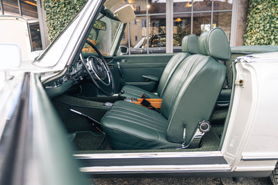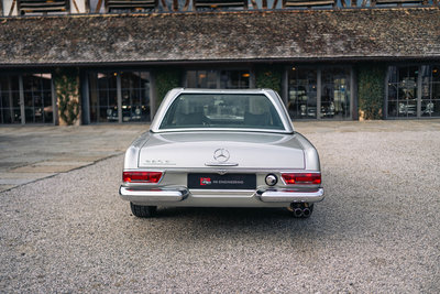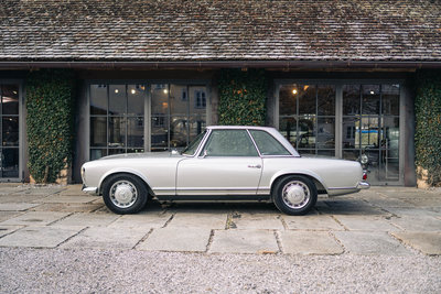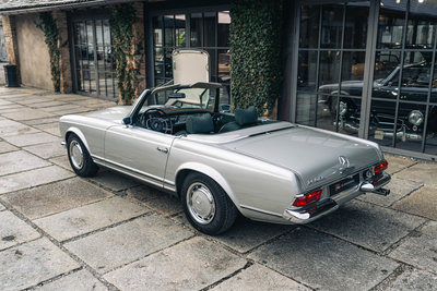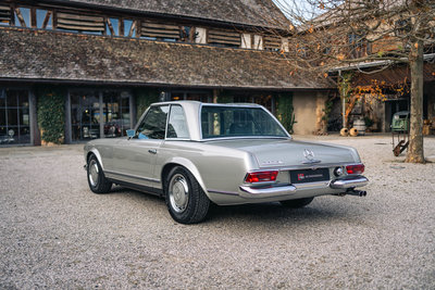 HIGHLIGHTS: • Mercedes-Benz 280 SL „Pagode“ aus dem Jahr 1968 mit Automatikgetriebe • Zeitlos elegante Farbkombination in Silbergrau-Metallic mit dunkelgrünem Interieur und grünem Softtop • Perfekte Vollrestauration durch den deutschen Experten Stickel Pagoden Center aus Rutesheim • Laut Mercedes-Benz Herstellerbescheinigung „Matching Numbers“ • Sonderausstattung: Radio Becker Mexico mit Navigation, V2A-Auspuff, Lederausstattung grün, Kopfstützen, Dreipunkt-Automatikgurte, Notsitze, Colorverglasung, Antenne elektrisch, Wegfahrsperre, Zusatzlüfter elektrisch, Hardtop restauriert, GPS, Diebstahlwarnanlage, Automatik-Getriebe, Servo-Lenkung, Sportfahrwerk Diese Mercedes-Benz 280 SL Pagode aus dem Baujahr 1968 präsentiert sich in der klassischen und äußerst stimmigen Farbkombination Silbergrau Metallic (Farbcode 180) mit grünem Lederinterieur. Das dunkelgrüne Verdeck sowie das silbermetallic lackierte Hardtop runden das elegante Gesamtbild harmonisch ab. Das Fahrzeug wurde ursprünglich in den USA ausgeliefert und im Jahr 2012 nach Deutschland importiert. Von Oktober 2013 bis März 2015 erfolgte eine umfassende Vollrestauration durch das renommierte Stickel Pagoden Center. Sämtliche Arbeiten wurden mit höchstem handwerklichem Anspruch und großer Sorgfalt ausgeführt und sind durch über 300 Restaurierungsfotos lückenlos dokumentiert. Seit Abschluss der Restauration befindet sich der Wagen durchgehend im selben Besitz. Der 280 SL verfügt über „Matching Numbers“, bestätigt durch ein Originalitätszertifikat von Mercedes-Benz, sowie über eine Classic-Data-Bewertung mit der Zustandsnote 1. Die ursprünglich vorhandene US-Spezifikation wurde fachgerecht auf deutsche Auslieferungsspezifikation umgerüstet. Der Kilometerstand seit der Vollrestauration beträgt 12.980 km, das Fahrzeug ist mit einem H-Kennzeichen zugelassen. Im Fahrbetrieb überzeugt die Pagode durch sehr ausgewogene und souveräne Fahreigenschaften, eine harmonisch arbeitende Automatik sowie ein authentisches klassisches Mercedes-Benz-Fahrgefühl ohne Kompromisse. Zwischenverkauf und Irrtümer für dieses Angebot sind ausdrücklich vorbehalten. Ausschlaggebend sind einzig und allein die Vereinbarungen im Kaufvertrag.