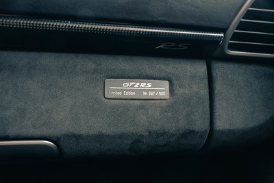 Highlights: •Nummer 247 von nur 500 gebauten Fahrzeugen •Deutsche Erstauslieferung mit nur einem Briefeintrag •seit 2016 in Sammlerhand und lediglich 500 Kilometer bis Heute zurückgelegt! •unfall- und nachlackierungsfrei, Porsche Approved fähig! •Kilometerstand: 51.900 (lückenlos Porsche Scheckheft gepflegt, 2011 bei 19.881 KM, 2013 bei 40.324 KM, 2017 bei 51.237 KM) •aktuelles Überdreher-Protokoll liegt vor, keine Einträge in Stufe 3, sowie nur 68 Zündungen in Stufe 2! •kein Rennstreckeneinsatz Dieser wunderschöne Porsche 911 (997) GT2 RS Clubsport ist die Nummer 247 von nur 500 gebauten Fahrzeugen. Der 997 GT2 RS ist mit seinen 620 PS der stärkste jemals gebaute 997 Serienporsche mit Schaltgetriebe. Unser Fahrzeug wurde am 05.11.2010 in Stuttgart an einen deutschen Unternehmer ausgeliefert welcher den Wagen bis 2016 in seinem Besitz hielt und als Alltagswagen nutzte. Im Anschluss wurde der Wagen an einen österreichischen Sammler verkauft, welcher den GT2 jedoch nie auf sich zugelassen hat. Der GT2 präsentiert sich in einem sehr gutem Zustand ohne Rennstreckennutzung, ist zudem Unfall- und Nachlackierungsfrei. Folgende Ausstattung wurde ab Werk bestellt: - Lackierung in schwarz 041 - Sportsitze in Leder Alcantara Anthrazit - Türeinstiegsblenden Carbon beleuchtet - Sport-Chrono-Plus-Paket mit schwarzem Ziffernblatt - Automatisch abblendende Spiegel - Regensensor - 19 Zoll GT Felgen in Silbermetallic/Zentralverschluss - Carbon Schalensitz Klappbar - Tempomat - Soundsystem - Windschutzscheibe mit Blendstreifen - Garagentoröffner - PCM Navigationssystem Europa, Touchscreen, CD - Sicherheitsgurte in Indischrot - Carbon Interieur-Paket - Carbon Exterieur-Paket - Carbon Aussenspiegel - PCCB Keramicbremsen - Türverkleidungen sowie Armaturenbrett in Volleder - Dachhimmel Alcantara uvm. Sichern Sie sich diesen besonderen limitierten und deutschen GT2 RS Clubsport in absolutem Top-Zustand aus 1.Hand mit legendären Einmassenschwungrad. Wir liefern diesen 911er mit großem Spaßfaktor natürlich mit neuem TÜV, vollständiger Bordliteratur, allen Fahrzeugschlüsseln sowie Rechnungen. Zwischenverkauf und Irrtümer für dieses Angebot sind ausdrücklich vorbehalten. Ausschlaggebend sind einzig und allein die Vereinbarungen im Kaufvertrag.