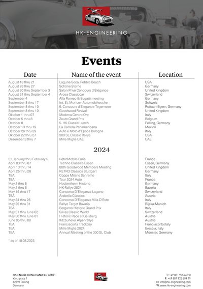 Our own in-house events such as the annual vintage car rallies to our participation in international exhibitions and trade fairs for classic cars and iconic events in historical motorsport. Below you will find suggestions for interesting events this year.