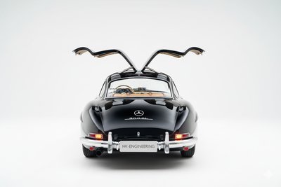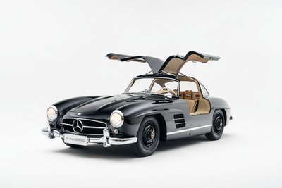 NOW AVAILABLE Highlights: • 1956 Mercedes-Benz 300 SL Coupé in delivery color black, combined with cream leather interior and rare Rudge center-lock rims • first delivered on July 3, 1956 via Mercedes-Benz Distribution New York, USA • special equipment ex works: a windshield washer system, special upholstery, instruments with English lettering, sealed-beam headlights with separate parking lights, bumper horns, windshield wheels with chrome-plated dish and highly polished rims as well as protractor & balancing weights supplied loose - all packed in a lightweight seaworthy box • from the former previous ownership of coupé Group member Marty Wiener, USA and the well-known Rosso Bianco Museum, Aschaffenburg, Germany • documented engine overhaul in 2007 and only 6,000 miles ago • including matching two-piece luggage set and comprehensive HK-ENGINEERING delivery service before handover • matching numbers