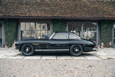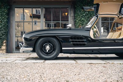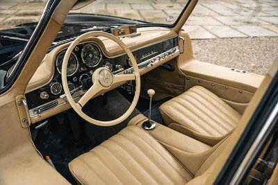 HK-ENGINEERING in Polling – a global leader in the restoration and sale of exclusive Mercedes-Benz 300 SL models since 1984, as well as your reliable partner in the classic car trade. With passion and the highest quality standards, we dedicate ourselves to unique vehicles that retain their value and stir emotions. In addition to the vehicle offered here, we always have an exquisite selection of 300 SLs and other classics available for you. Please feel free to contact us. Highlights: • 1956 Mercedes-Benz 300 SL Coupé in delivery color black, combined with cream leather interior and rare Rudge center-lock rims • first delivered on July 3, 1956 via Mercedes-Benz Distribution New York, USA • special equipment ex works: a windshield washer system, special upholstery, instruments with English lettering, sealed-beam headlights with separate parking lights, bumper horns, windshield wheels with chrome-plated dish and highly polished rims as well as protractor & balancing weights supplied loose - all packed in a lightweight seaworthy box • from the former previous ownership of coupé Group member Marty Wiener, USA and the well-known Rosso Bianco Museum, Aschaffenburg, Germany • documented engine overhaul in 2007 and only 6,000 miles ago • including matching two-piece luggage set and comprehensive HK-ENGINEERING delivery service before handover • matching numbers