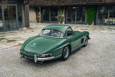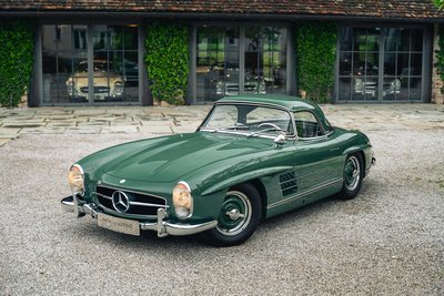 NOW AVAILABLE Highlights: • Unique opportunity – one of only around 30 Mercedes-Benz 300 SL Roadsters originally delivered with the extremely rare Rudge center-lock wheels • Breathtaking color combination, featuring paintwork in green (DB 298), complemented by dark green leather interior, green soft top, and elegantly shaped hardtop • German first delivery on August 15, 1957, to His Royal Highness Prince Christian of Hanover, Gut Calenberg / Leine • Complete restoration completed only 500 km ago by a renowned German specialist with many years of 300 SL experience – exceptionally documented with well over 1,000 photos and an investment of almost EUR 750.000 • matching numbers This offer is subject to prior sale and errors excepted. Only the agreements stipulated in the purchase contract are binding.